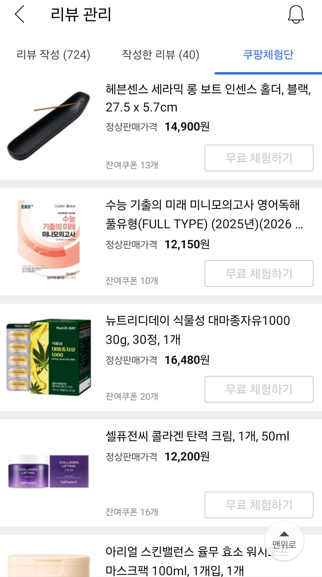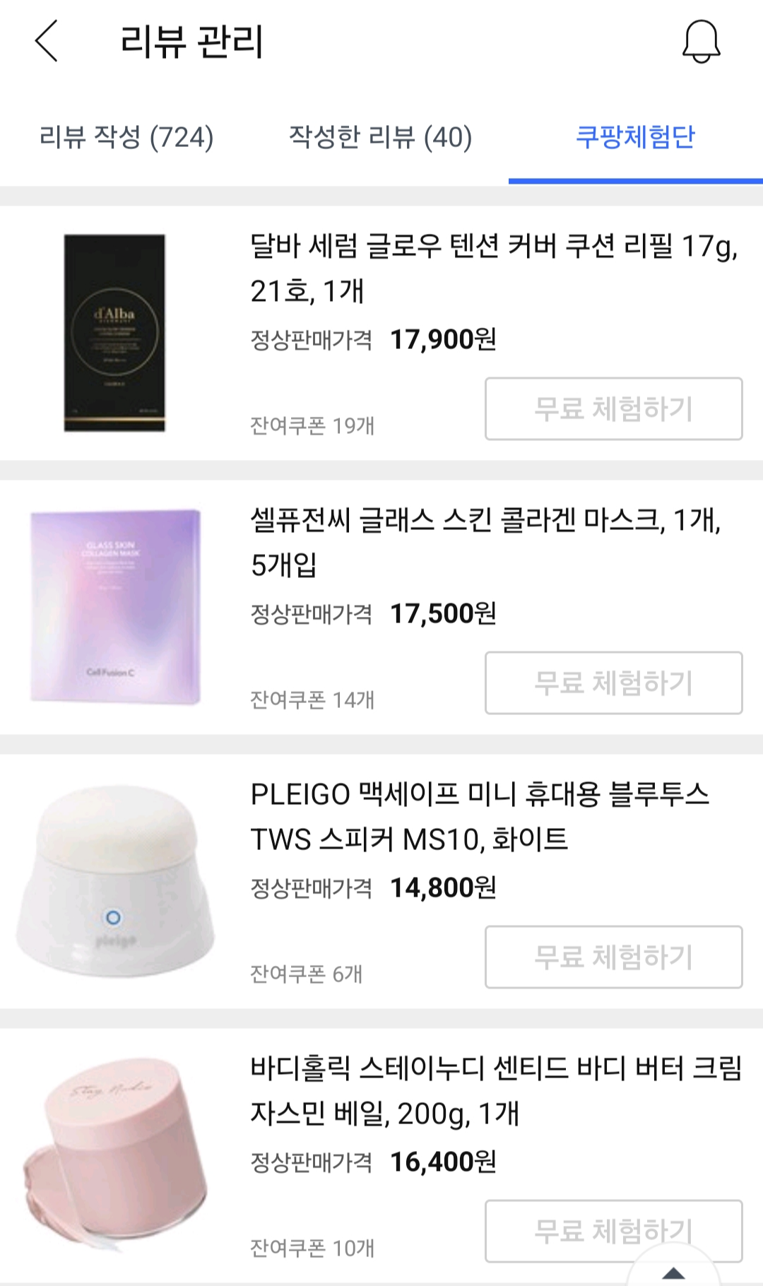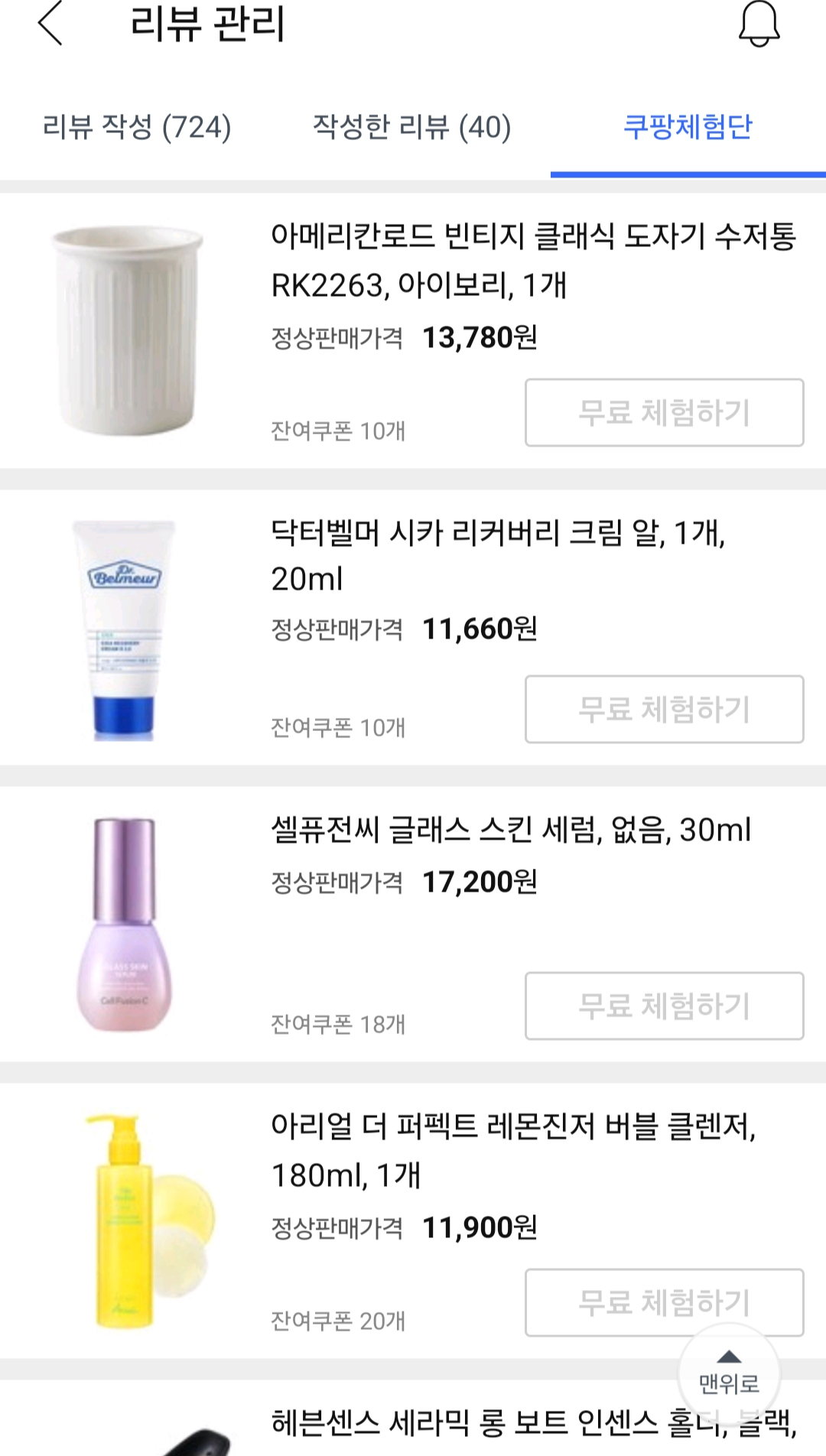 지난 쿠팡체험단 후기들
