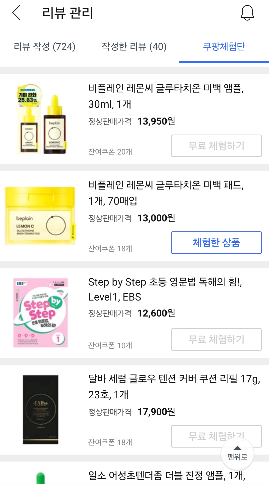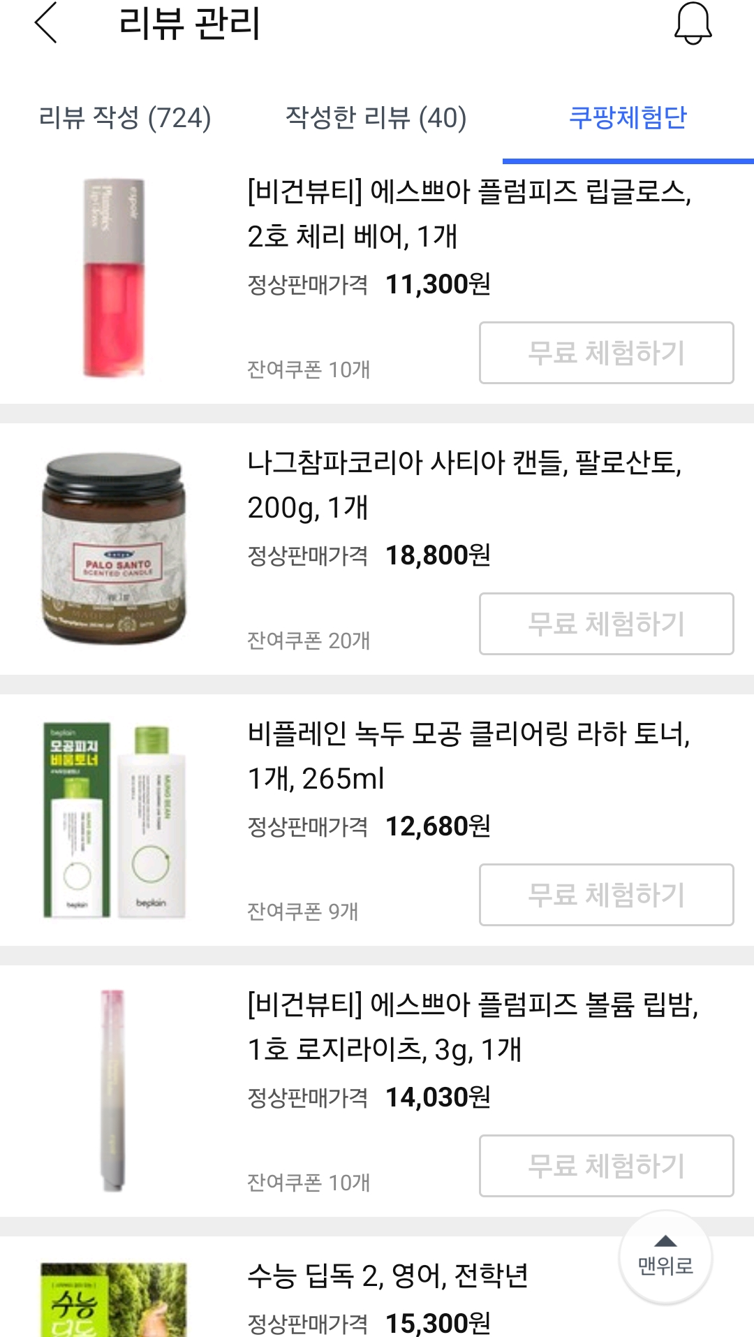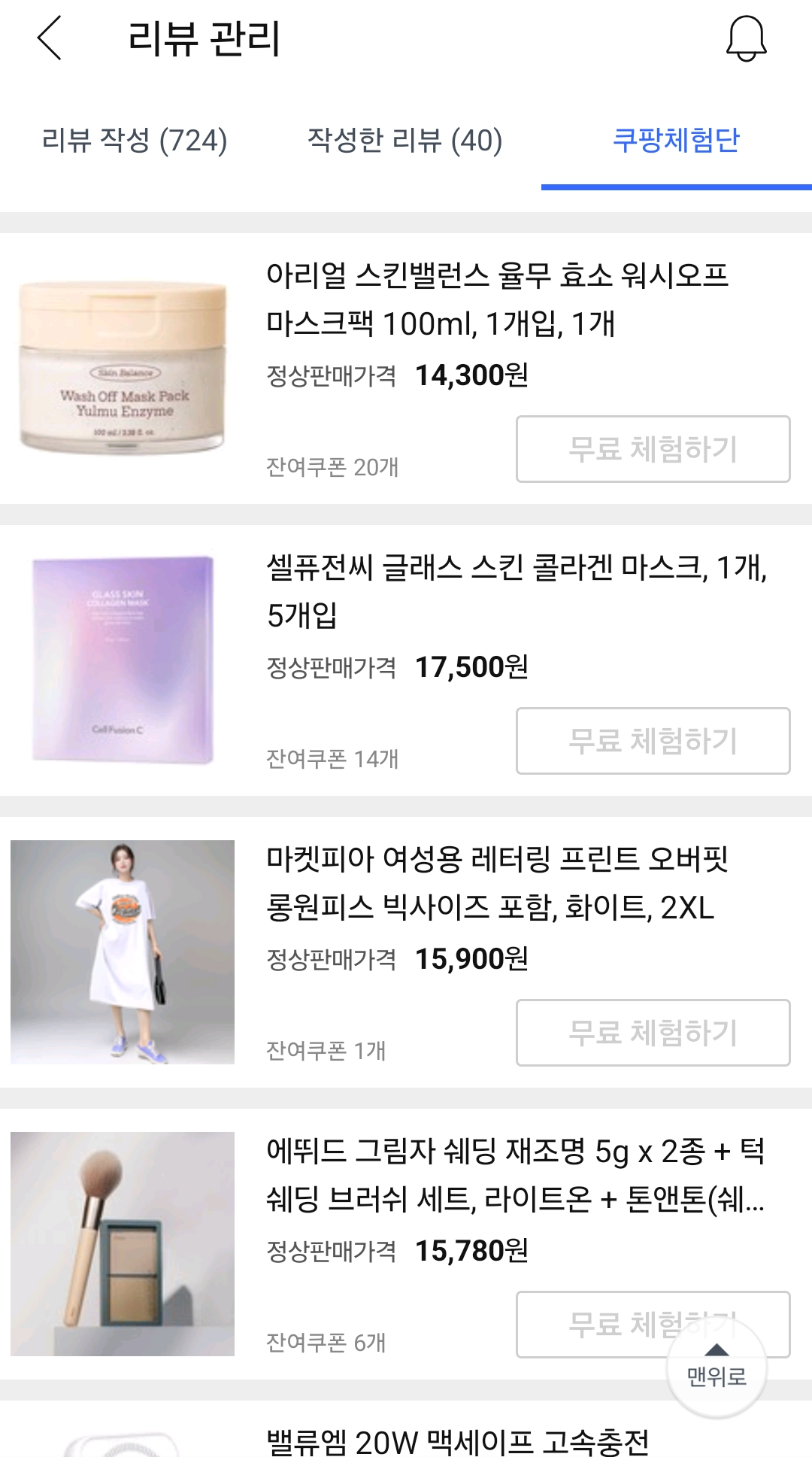 지난 쿠팡체험단 후기들