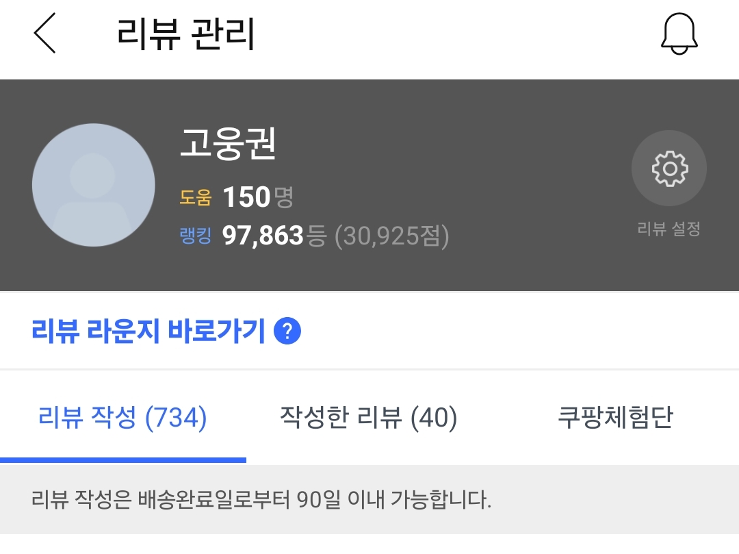 도움 150명, 랭킹 97,863등, 30,925점이예요